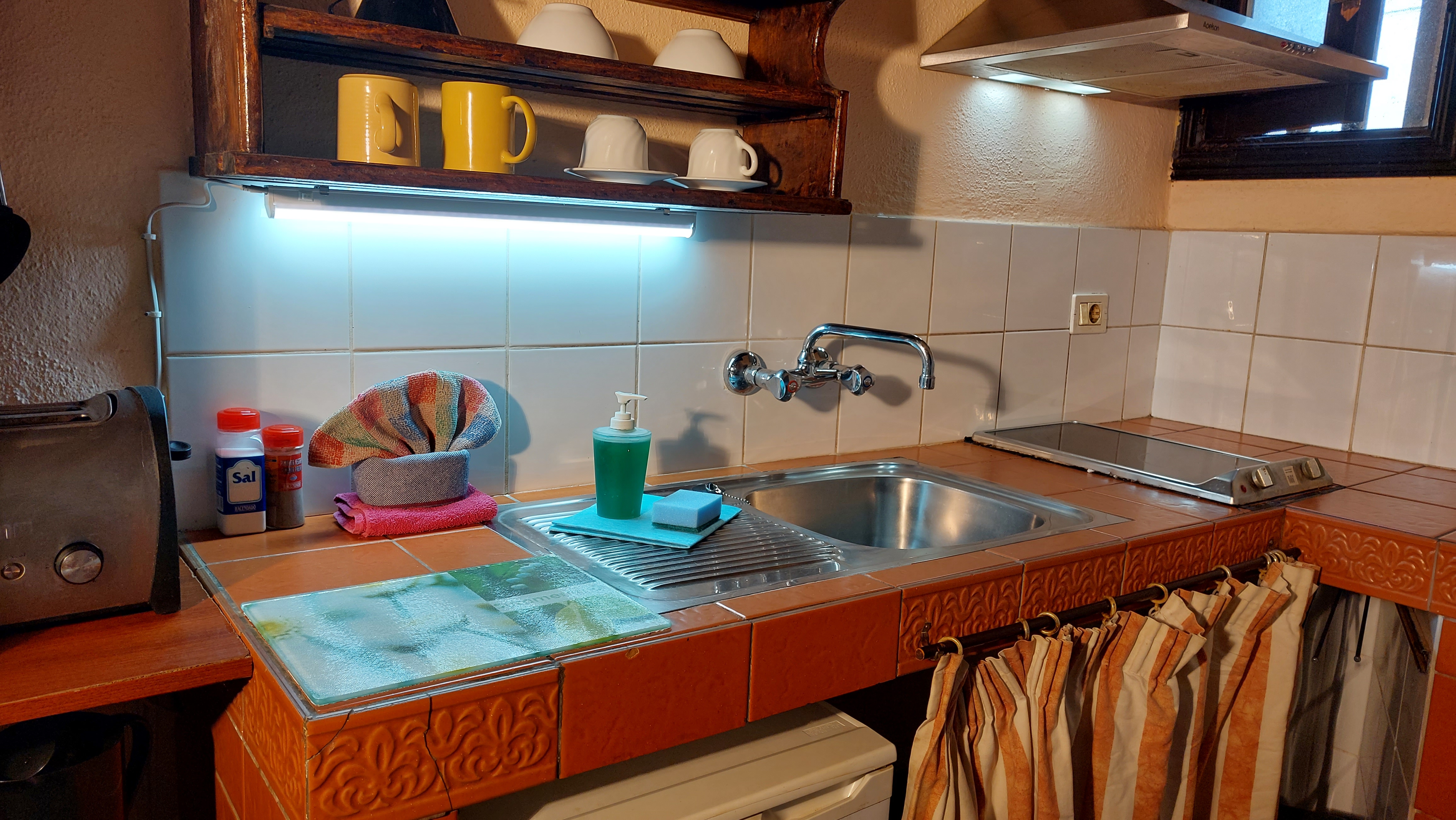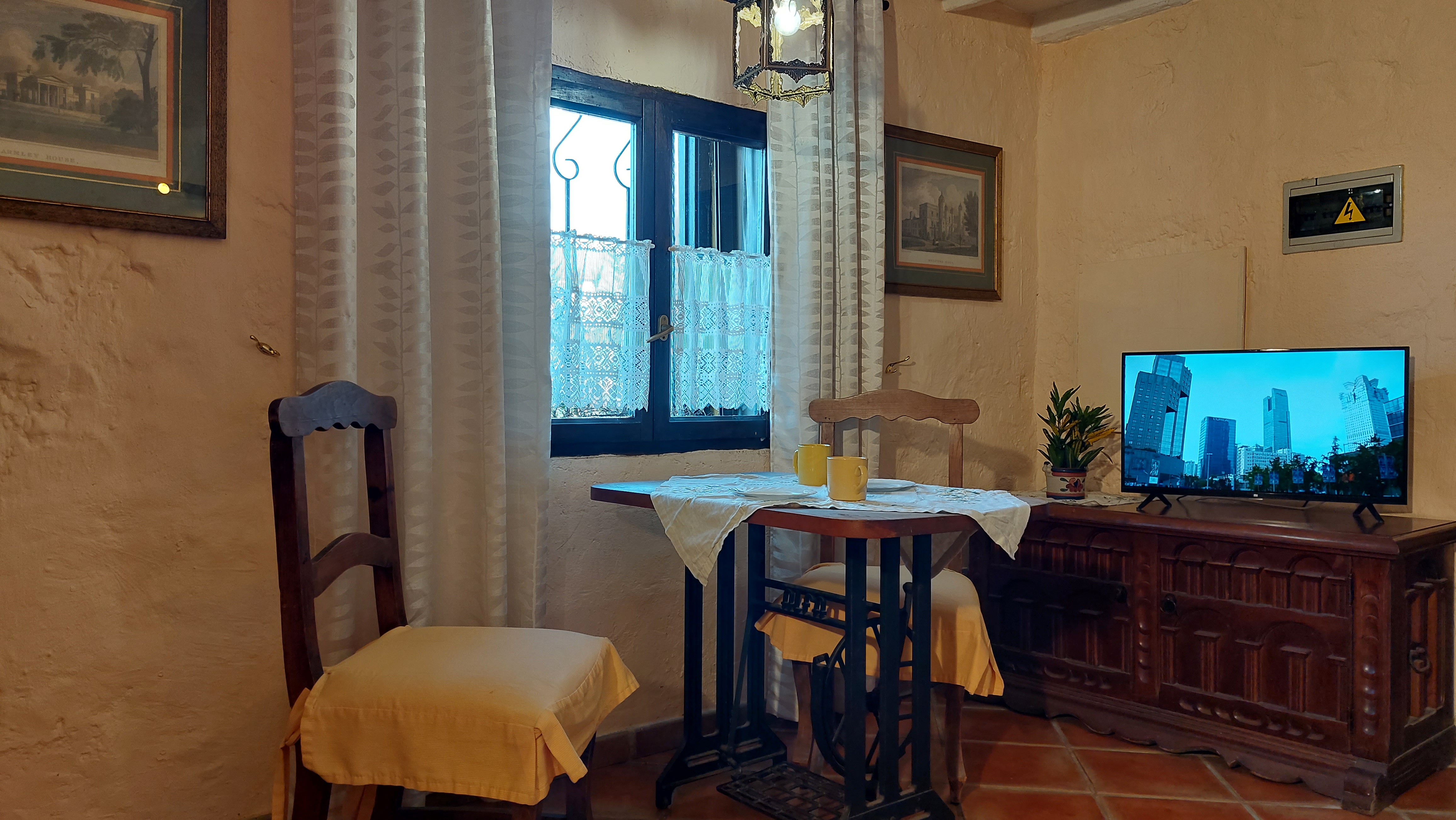 Die geräumige im rustikalen Stil eingerichtete Ferienwohnung verfügt über eine Küche, ein bequemes Wohnzimmer mit Essecke, ein geschmackvoll eingerichtetes Schlafzimmer, und eine wunderschöne Sitzgelegenheit auf der liebevoll gestalteten Innenhof-Terrasse. Die Ferienwohnung befindet sich im Erdgeschoss, das Schlafzimmer ist ruhig zum Innenhof gelegen. Von hier aus gelangen Sie auch direkt auf die Innenhof-Terrasse. Das kleine Wohnzimmerfenster bietet einen partiellen Meerblick und liegt zur Landstraße. Der Flachbildfernseher verfügt über Satellitenempfang mit ca. 450 internationalen Sendern- darunter alle frei empfangbaren deutschen Kanäle - sowie durch Umschalten auf der Fernbedienung über DVB-T-Empfang mit den gängigen spanischen Fernsehsendern. Zudem kann auf Anfrage kostenlos Netflix bereitgestellt werden. Unser Haus verfügt über Internetanschluss per Glasfaser und in allen Unterkünften sowie auf der Dachterrasse steht sehr gut funktionierendes W-LAN zur kostenlosen Verfügung.