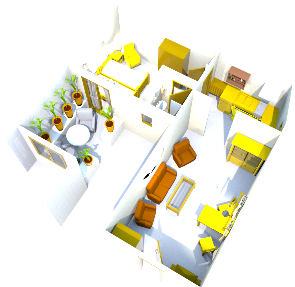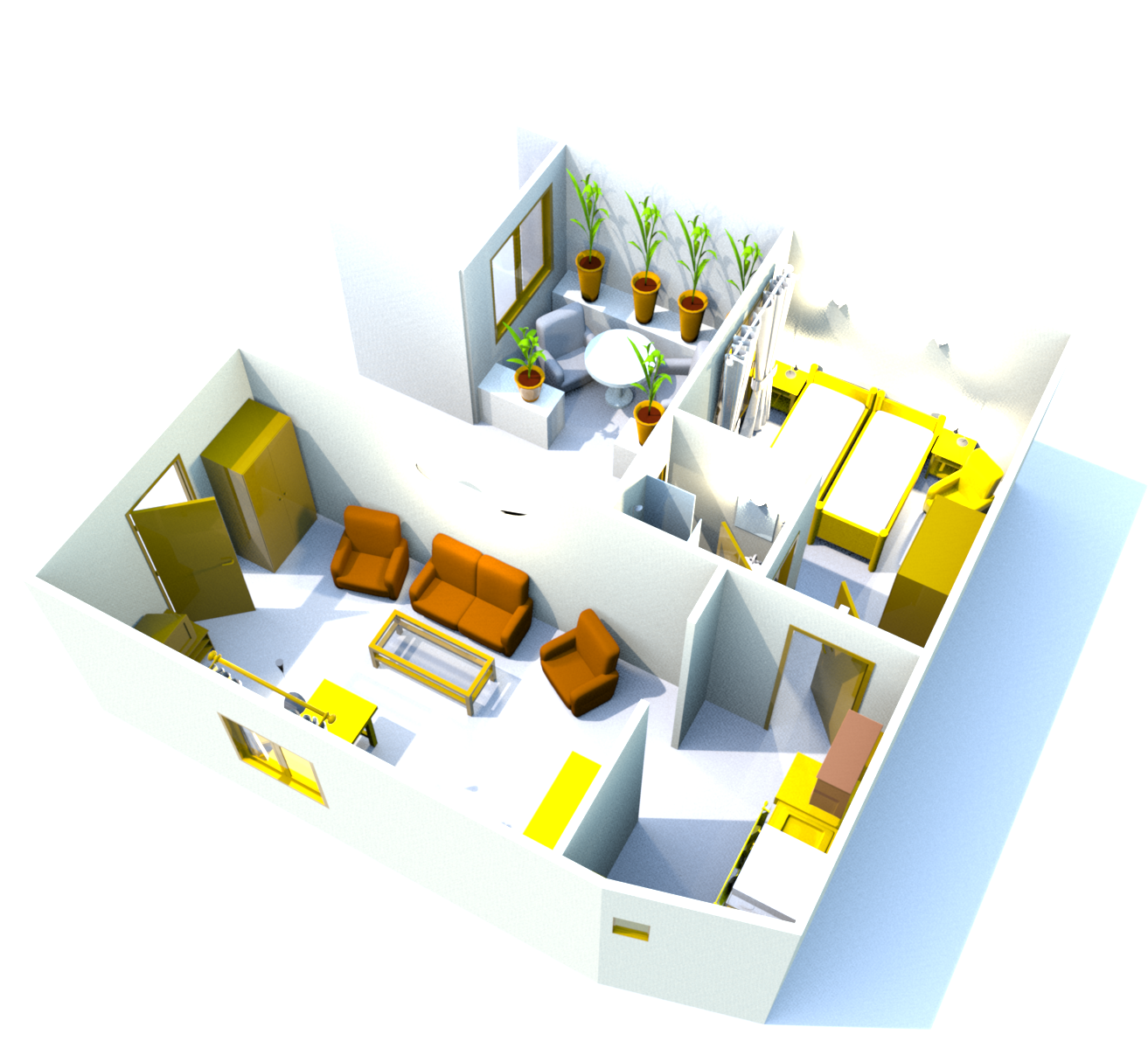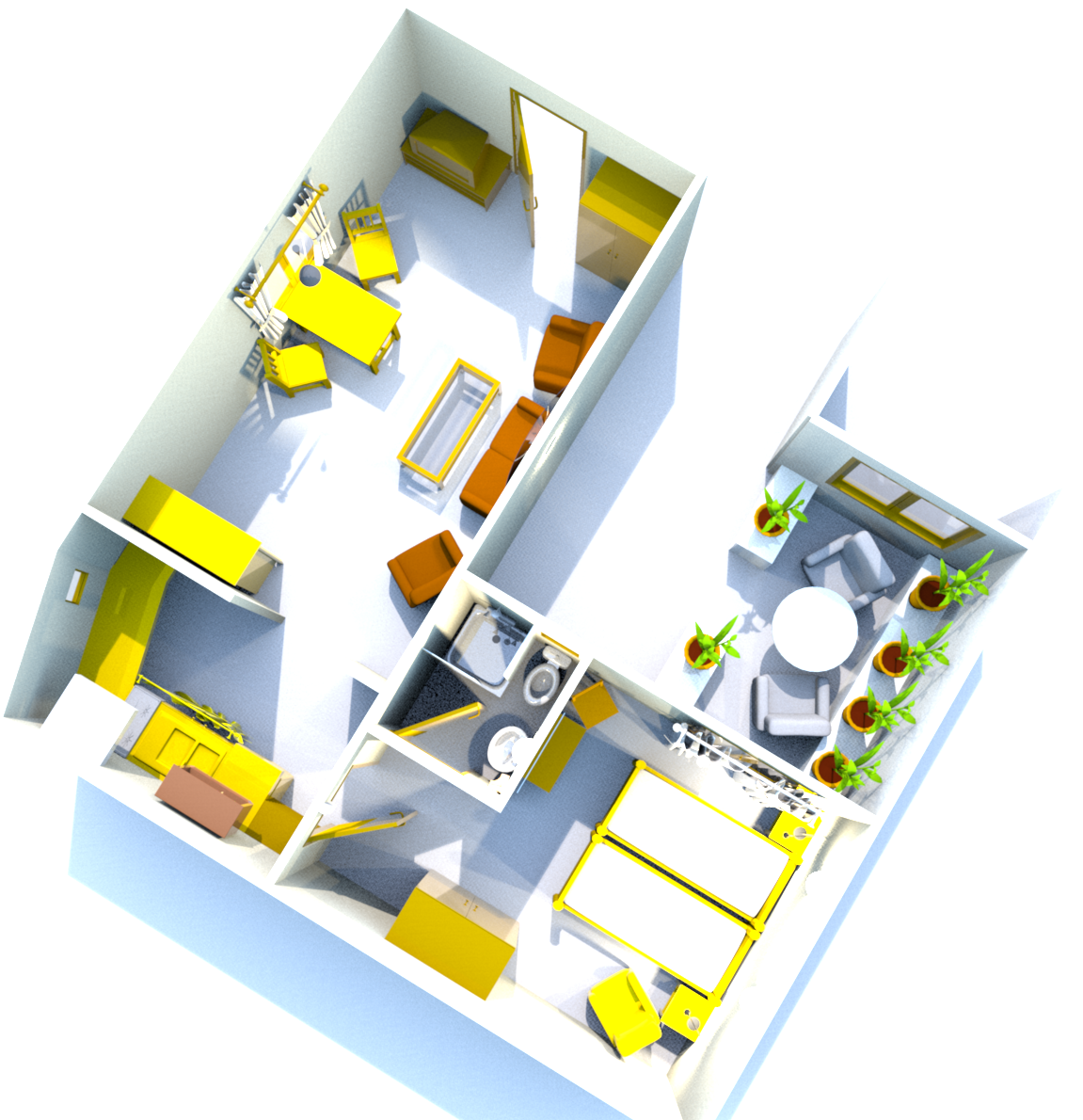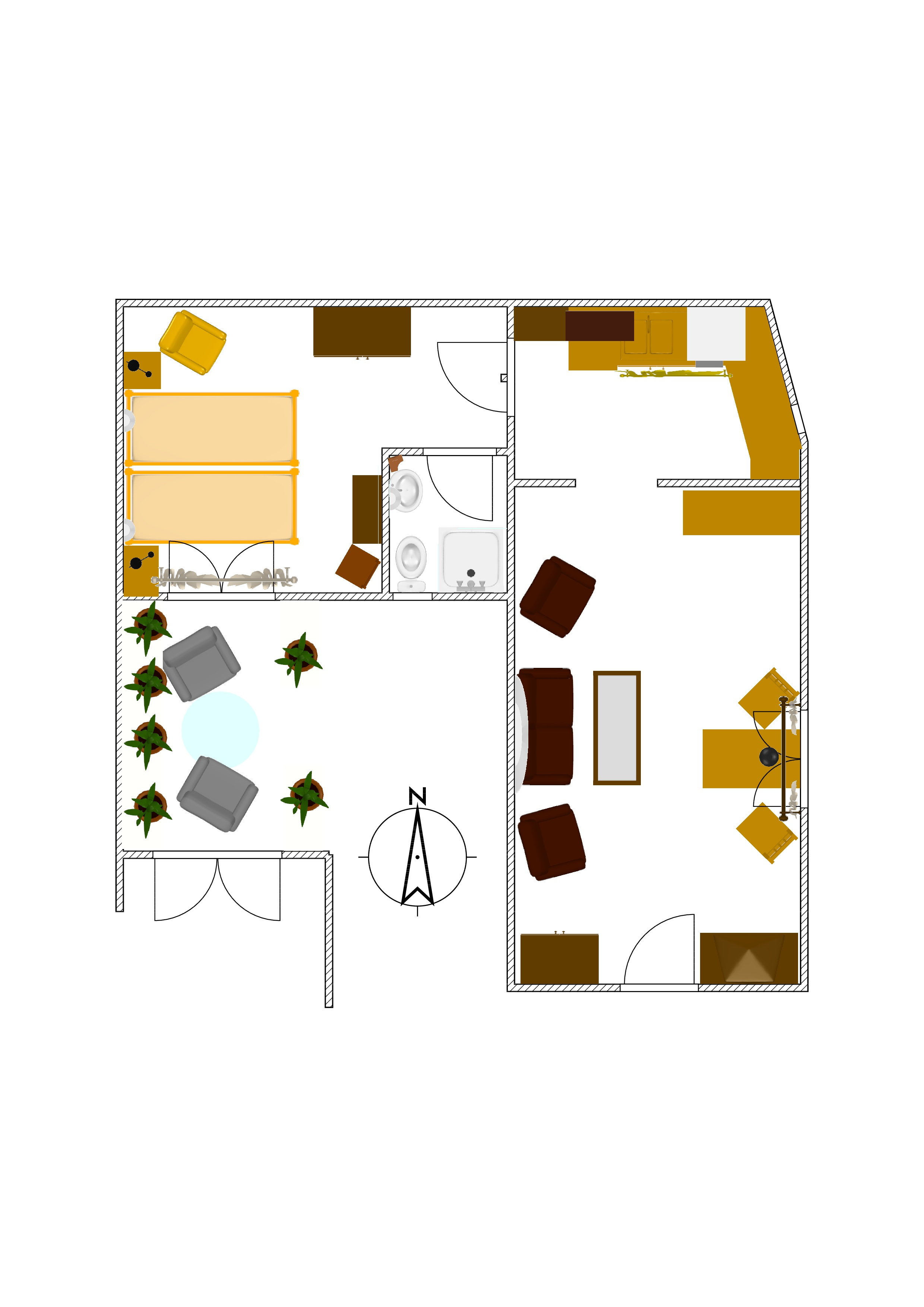 (Die Grundrisse sind lediglich eine Annährung an die Realität. Sie sollen nur die ungefähre Anordnung der Räume und Möbel darstellen.)