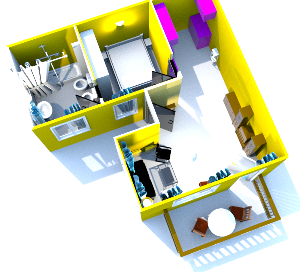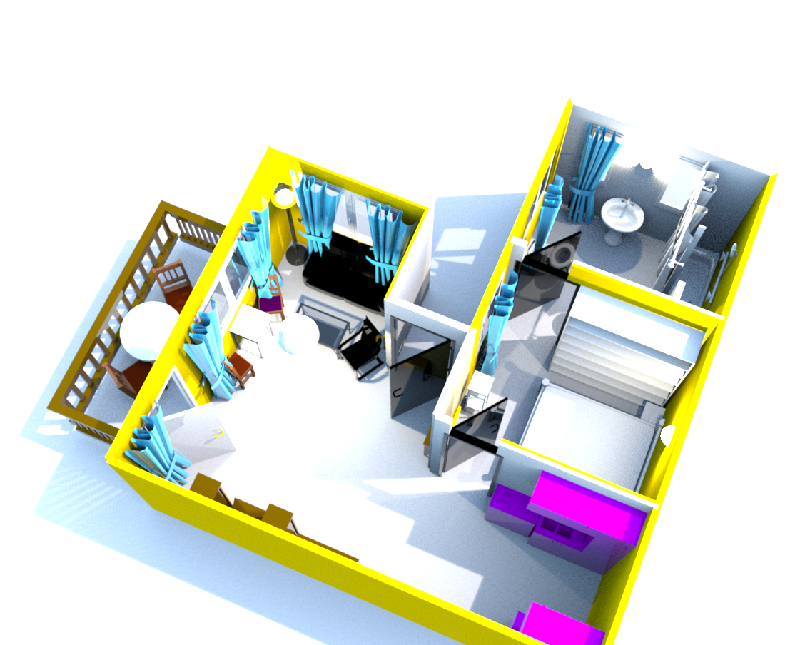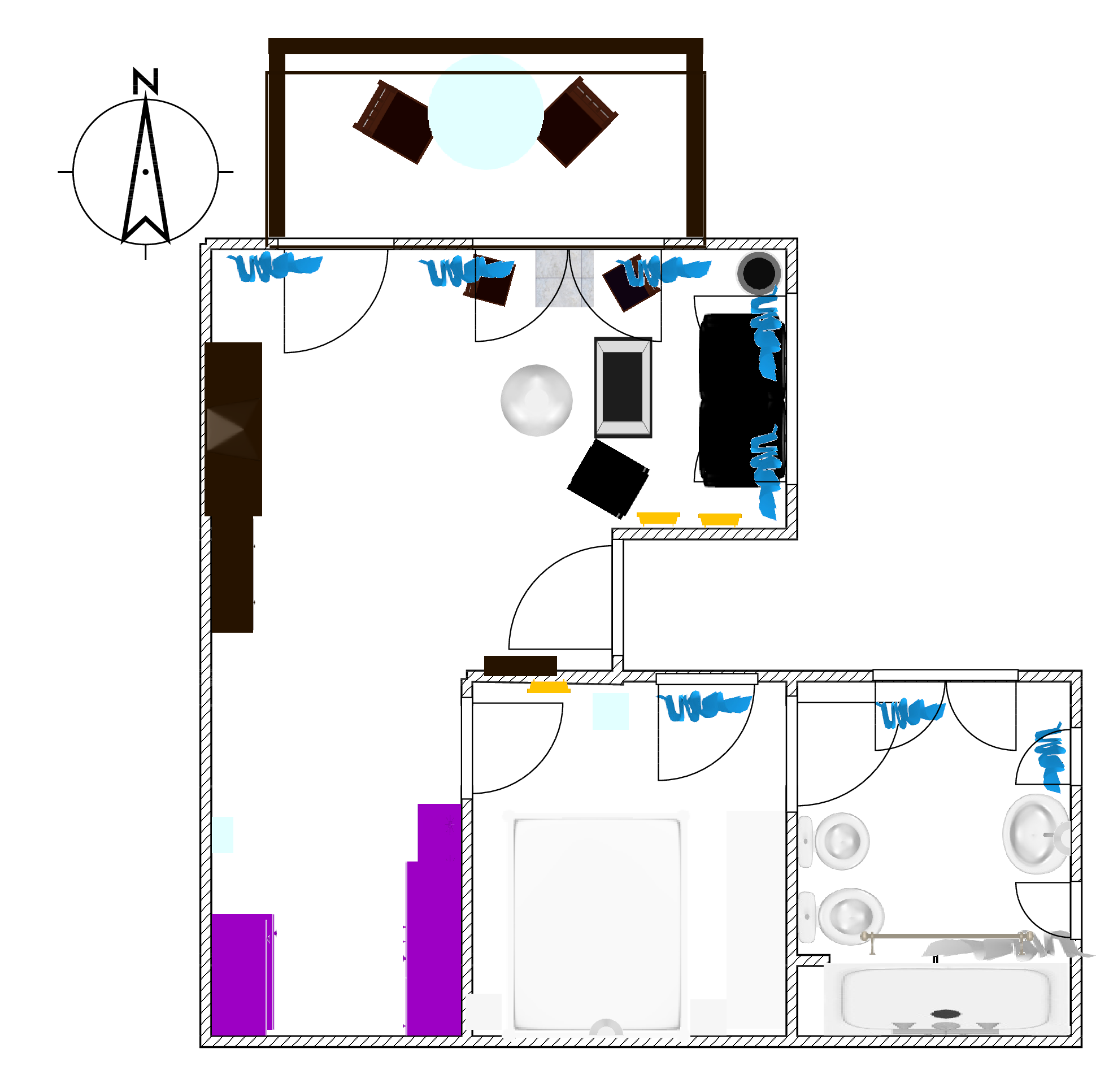 (Die Grundrisse sind lediglich eine Annährung an die Realität. Sie sollen nur die ungefähre Anordnung der Räume und Möbel darstellen.)